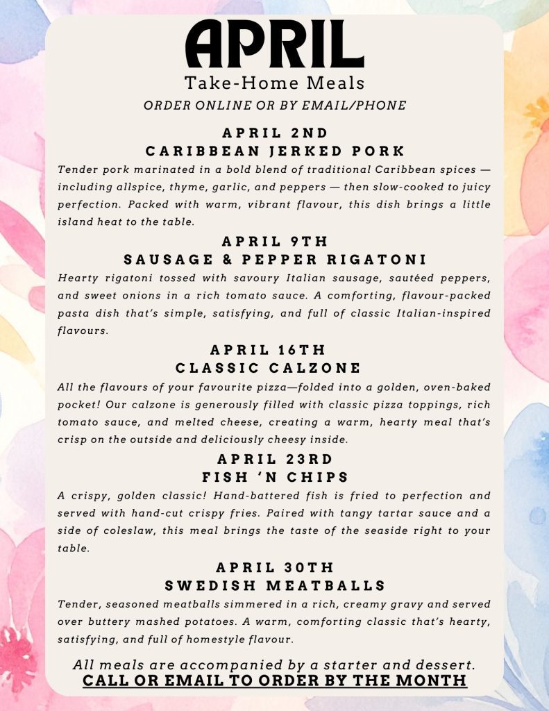 Place your order by Tuesday at 12 noon to reserve your meals for Thursday. Orders can also be made for multiple weeks. Call us at 613-821-2751 or email operations@stanleysfarm.com to place your order.